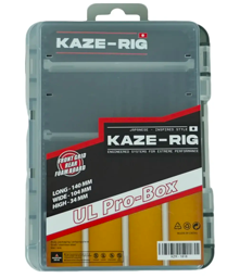 La Caja Multiuso Kaze-Rig UL Pro-Box es una caja de almacenamiento ultra ligera y profesional, pensada para mantener organizados y protegidos tus señuelos ultraligeros, moscas o pequeños accesorios de pesca. Su diseño compacto y eficiente permite que guardes y accedas fácilmente a tu equipo sin ocupar espacio innecesario, ideal para jornadas de pesca donde cada gramo cuenta.