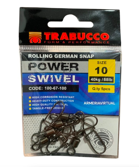Los destorcedores Trabucco Rolling Snap Nº 10 son accesorios de pesca diseñados para mejorar la utilidad y rendimiento de tus montajes terminales. Estos destorcedores combinan un giratorio tipo rolling con un snap rápido, permitiendo una rotación suave de la línea y la facilidad para cambiar señuelos o accesorios sin necesidad de desatar nudos. Su tamaño Nº 10 es ideal para montajes ligeros o medianos donde necesitas fluidez, versatilidad y rapidez de armado.