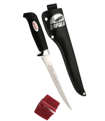 El Rapala Soft Grip Fillet Knife es un cuchillo de filetear de alta calidad especialmente diseñado para pescadores que buscan precisión, comodidad y rendimiento fiable al momento de procesar sus capturas. Equipado con una hoja de acero inoxidable afilada y flexible, este cuchillo permite realizar cortes limpios y precisos, separando fácilmente la carne de la espina sin desperdiciar tejido.